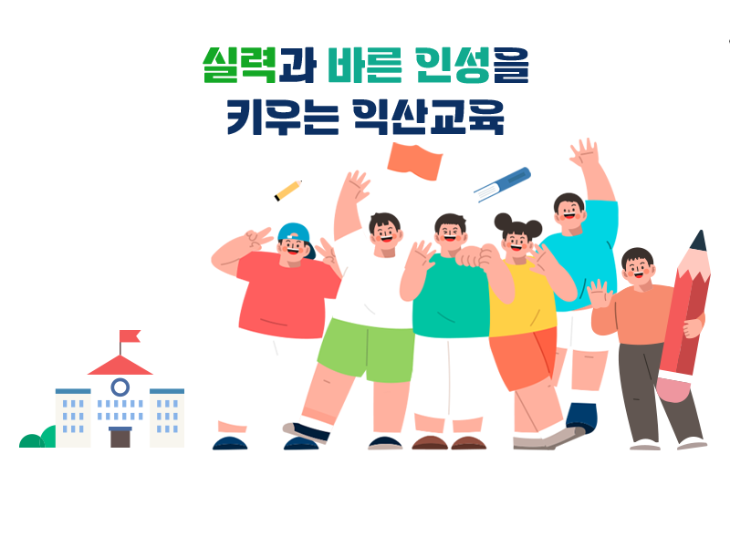 상단 메뉴를 통해 익산 교육의 기본 방향과 비전을 확인할 수 있으며, 중앙의 퀵 메뉴(Quick Menu)를 이용하면 사람들이 가장 많이 찾는 '전입학 안내', '제증명 발급', '검정고시' 등의 메뉴로 즉시 이동할 수 있습니다. 특히 익산 지역만의 특색 있는 교육 사업인 '익산교육혁신지구' 관련 소식도 메인 배너를 통해 상시 업데이트되므로 주목할 필요가 있습니다.